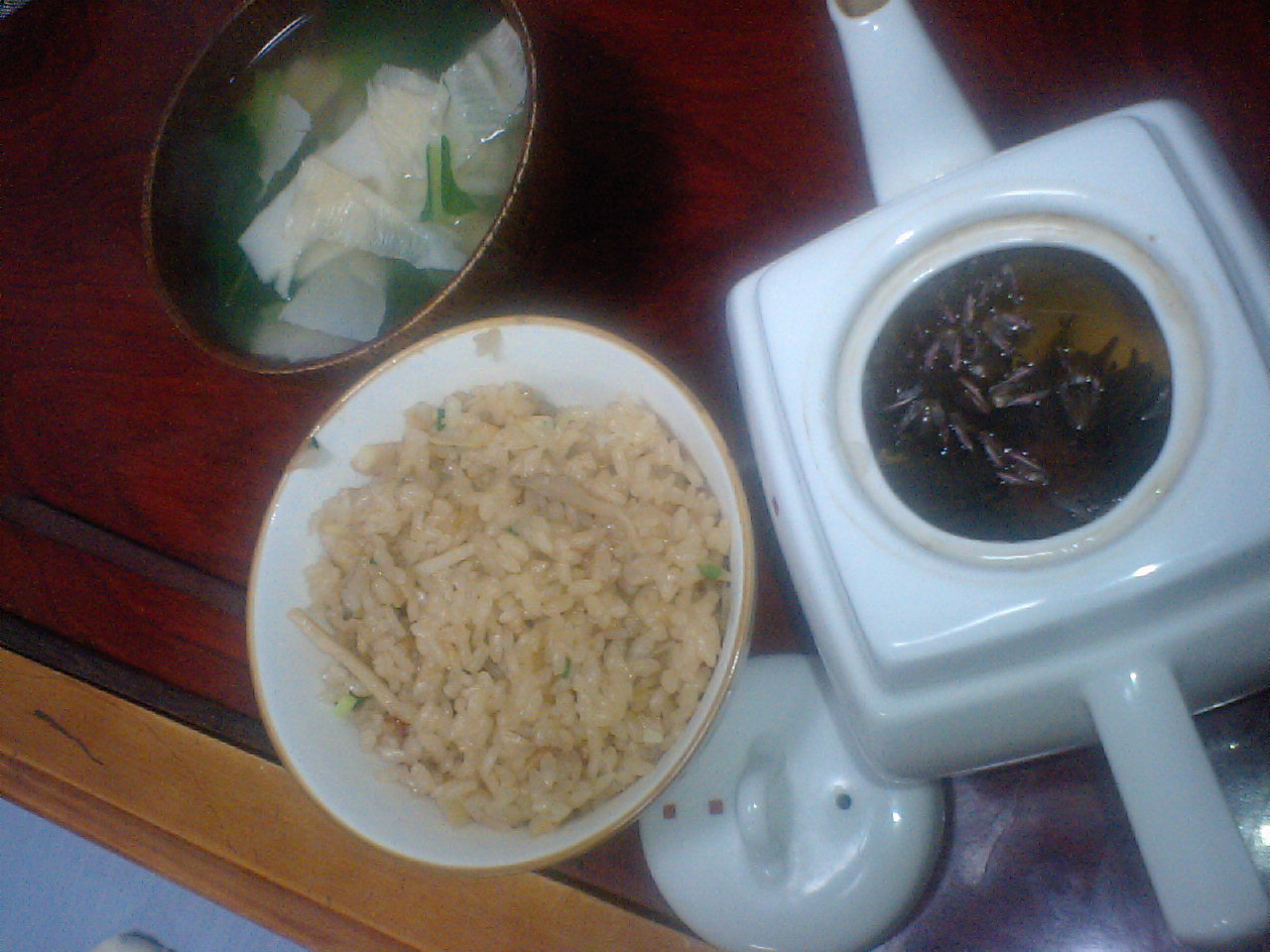 タケノコご飯は醤油漬けのタケノコで作ってみた。